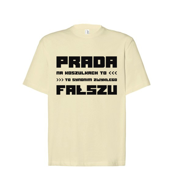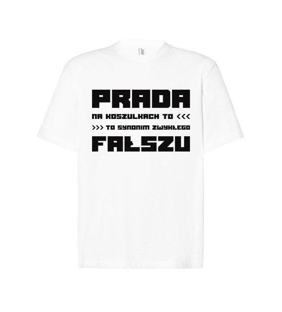T-shirt, koszulka z nadrukiem ”Prada na koszulkach to synonim zwykłego fałszu”